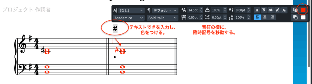 音符に色をつけることは簡単にできます。しかし臨時記号には色付けができないことに気づきました。この記事では、我流で編み出した方法を書きます。