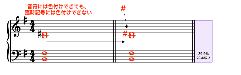 最初は音符にカラーをつければ、臨時記号にも色付けされるものだと思い込んでおりましたが・・無理。
