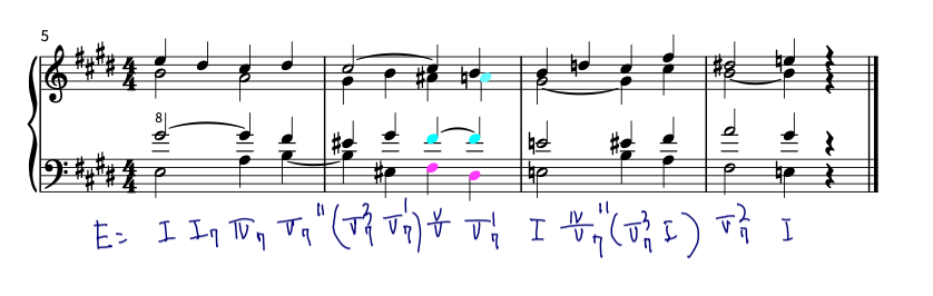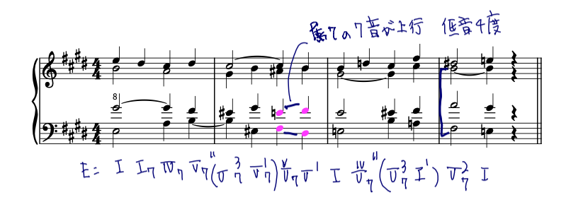4小節目の低音4度は相変わらず鎮座しております。全ての和声を、変更してみました。